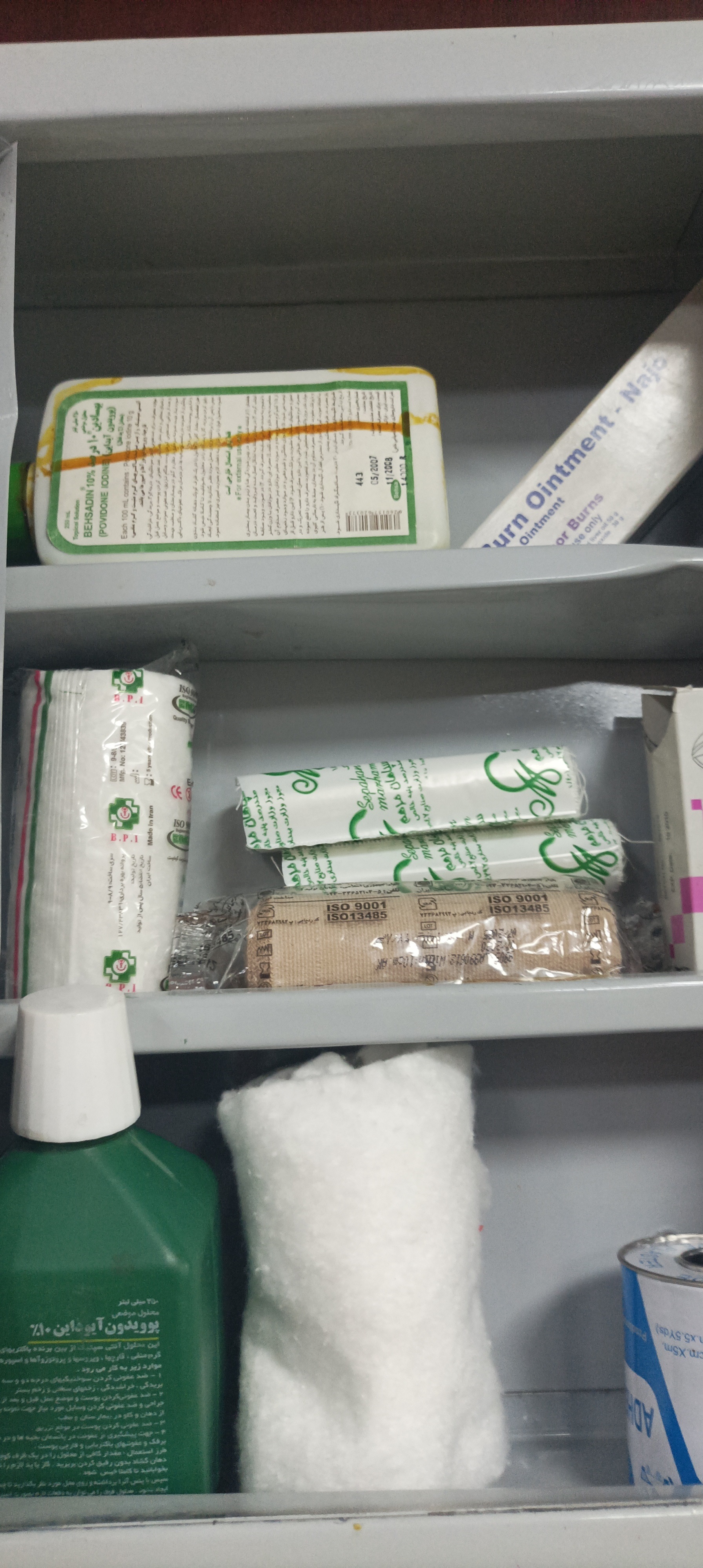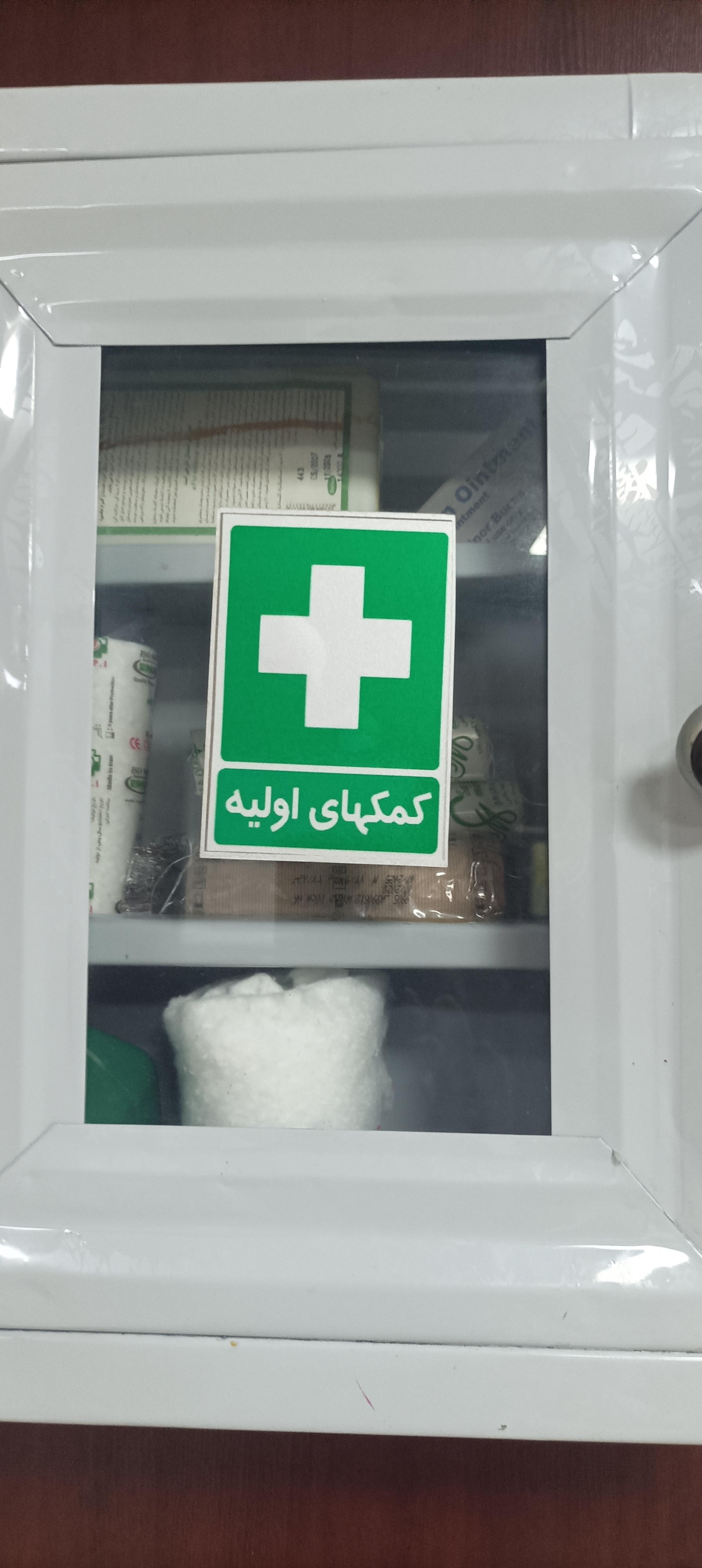 به دلیل احتمال وقوع حوادث پیشبینینشده در کتابخانه و سهولت در ارائه اقدامات اولیه قبل از رسیدن اورژانس یا مراجعه به پزشک، جعبه کمکهای اولیه در کتابخانه قرار داده شده است. این جعبه شامل اقلامی مانند بتادین، دستمالکاغذی، باند، گاز استریل، پنبه، چسب زخم، قرصهای مسکن و ضد حساسیت است که بعد از هر بار استفاده اقلام داخل جعبه شارژ خواهد شد.